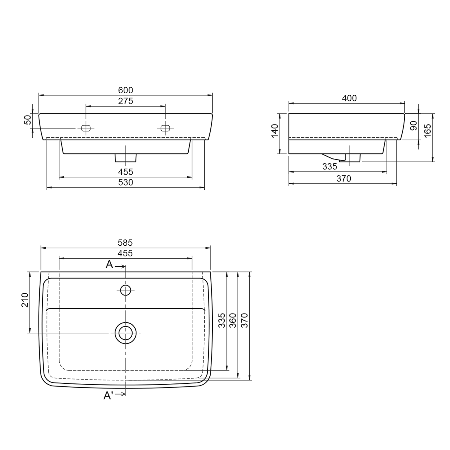 Aqualine DURU keramické umyvadlo 60x40cm, bílá TU0351