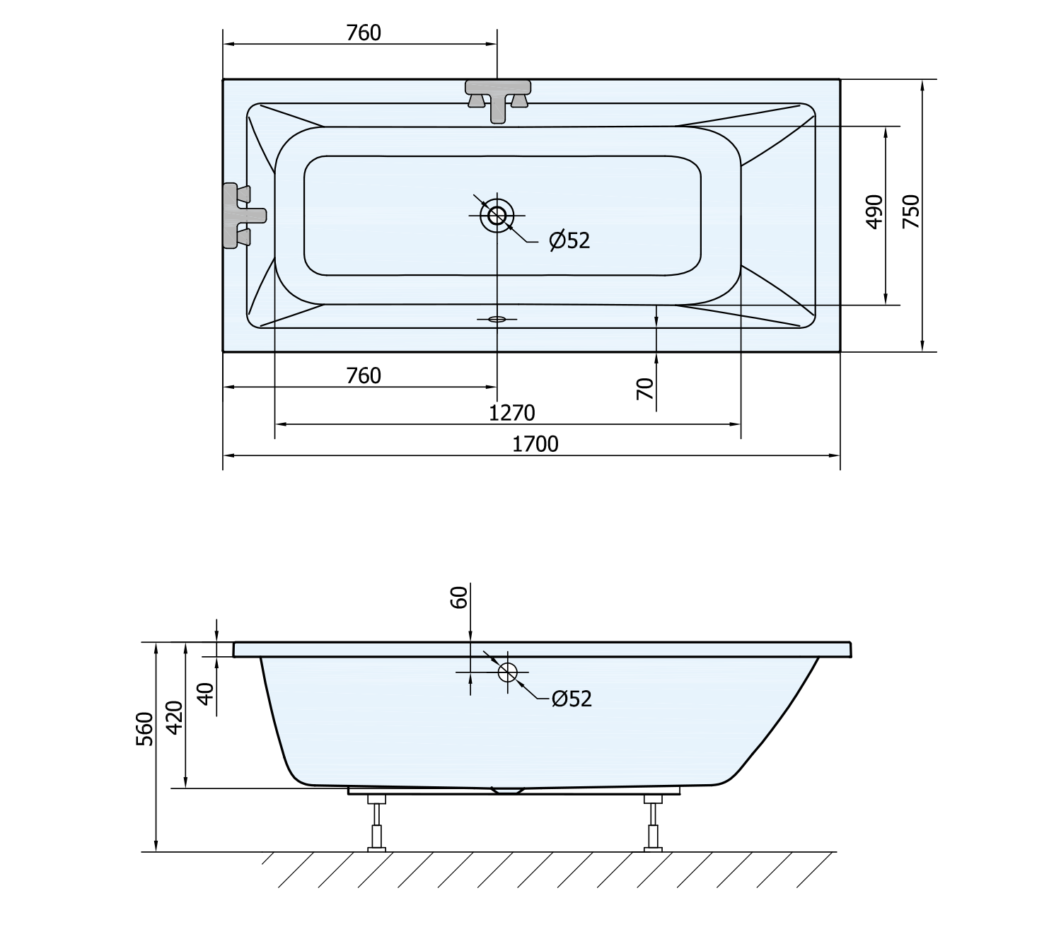 Aqualine NISA obdélníková vana 170x75x42cm, bílá A1775