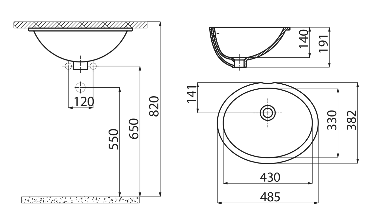CREAVIT Keramické umyvadlo pod desku, 48,5x38cm, bílá TP211