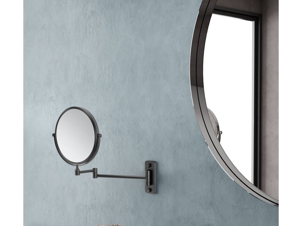 Gedy GAIA kosmetické zrcátko závěsné, Ø 180mm, oboustranné, černá mat CO202414