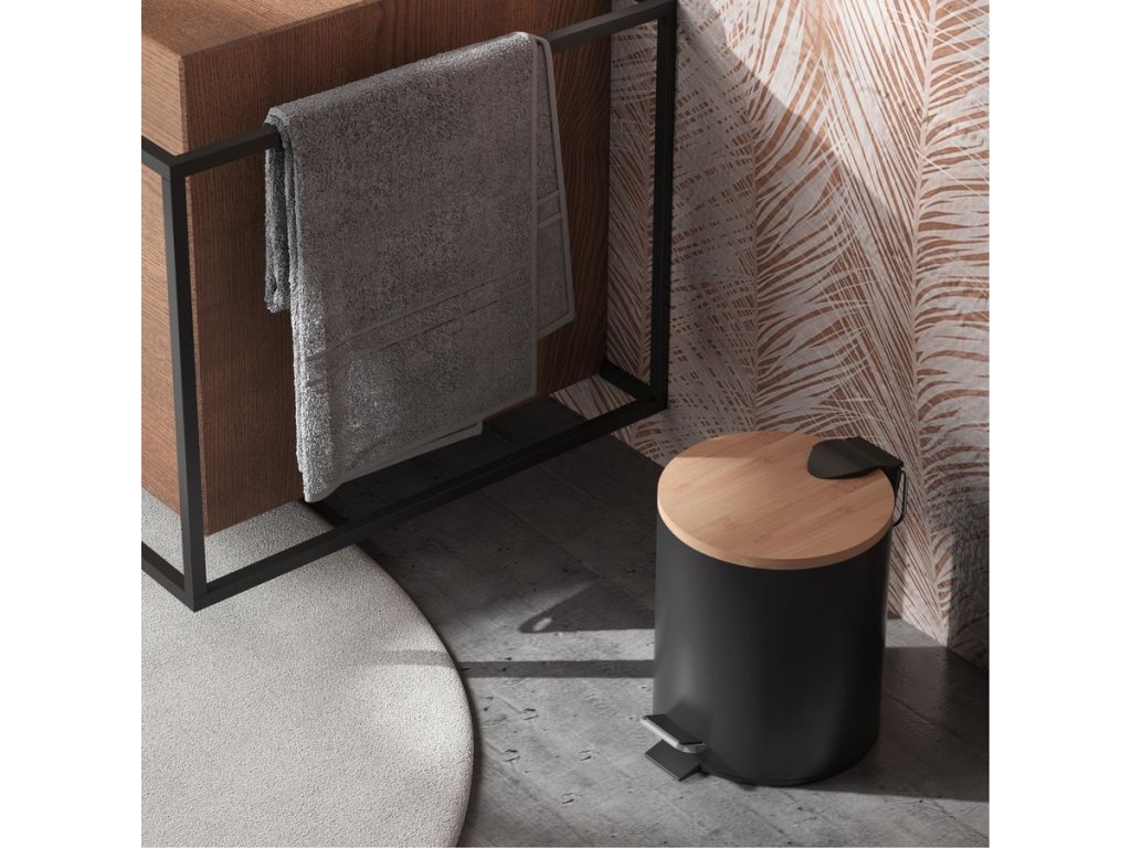 Gedy KENTA odpadkový koš 5l, Soft Close, černá mat/bambus 1409