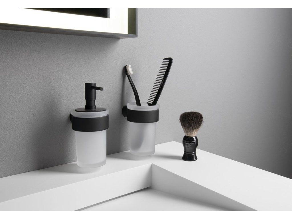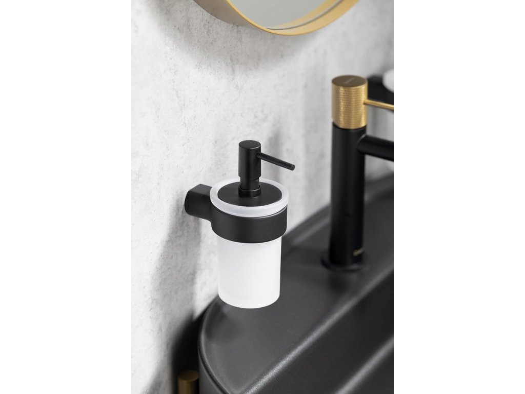 Gedy PIRENEI dávkovač mýdla 110 ml, mléčné sklo, černá mat PI8114