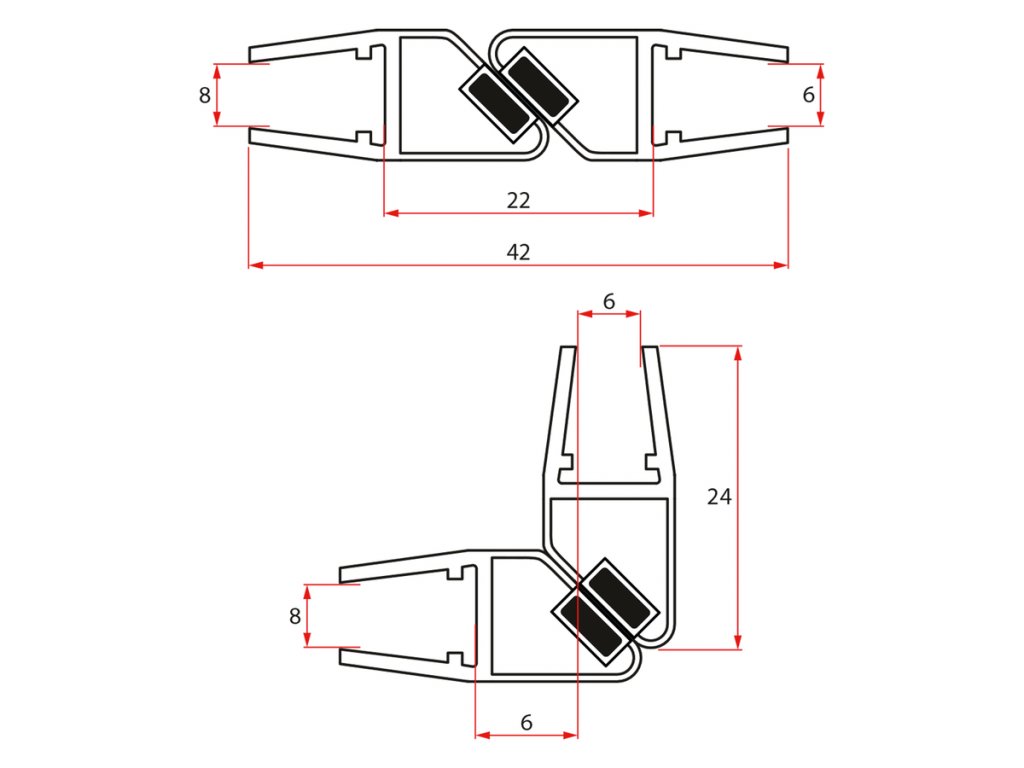 GELCO Set magnetických těsnění 45°pro sklo 6/8mm, 1900mm NDGL05
