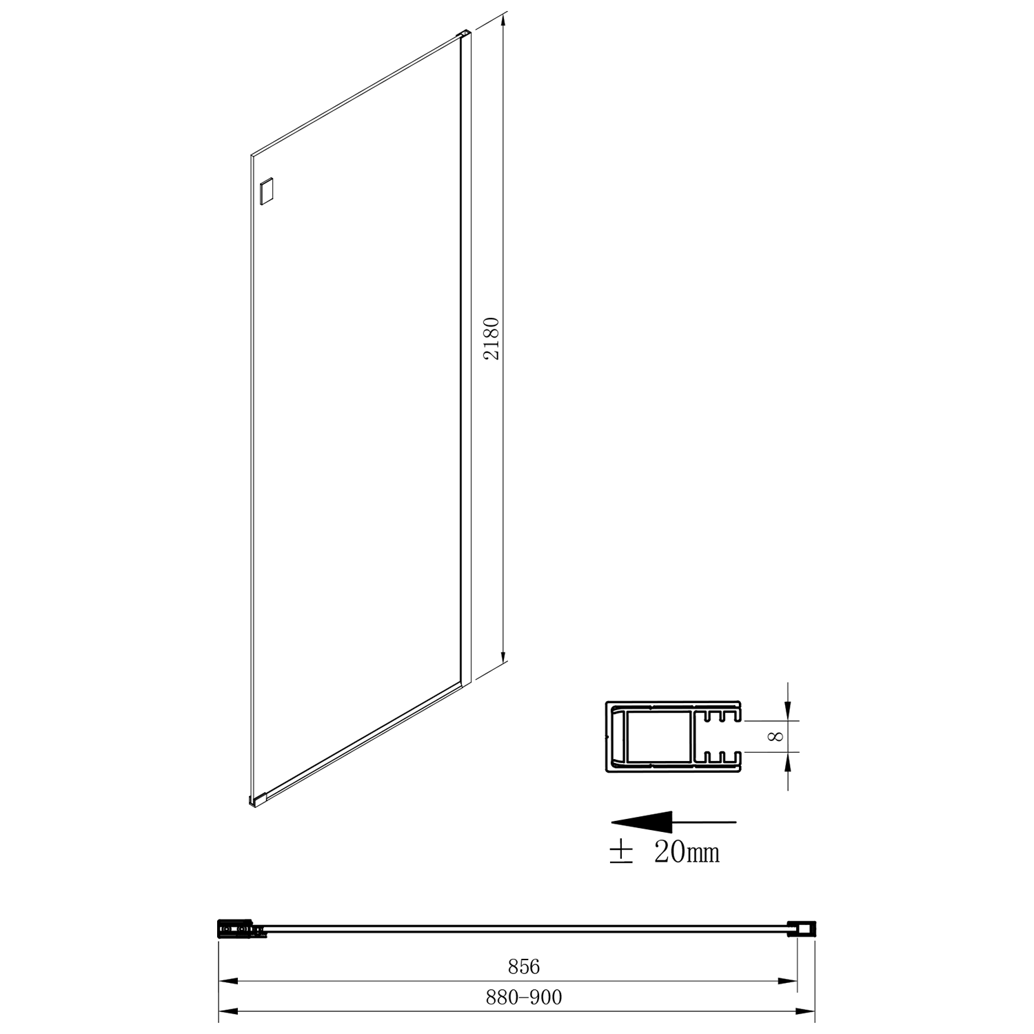 | Tvar: | Pevná stěna ke sprchovým dveřím |