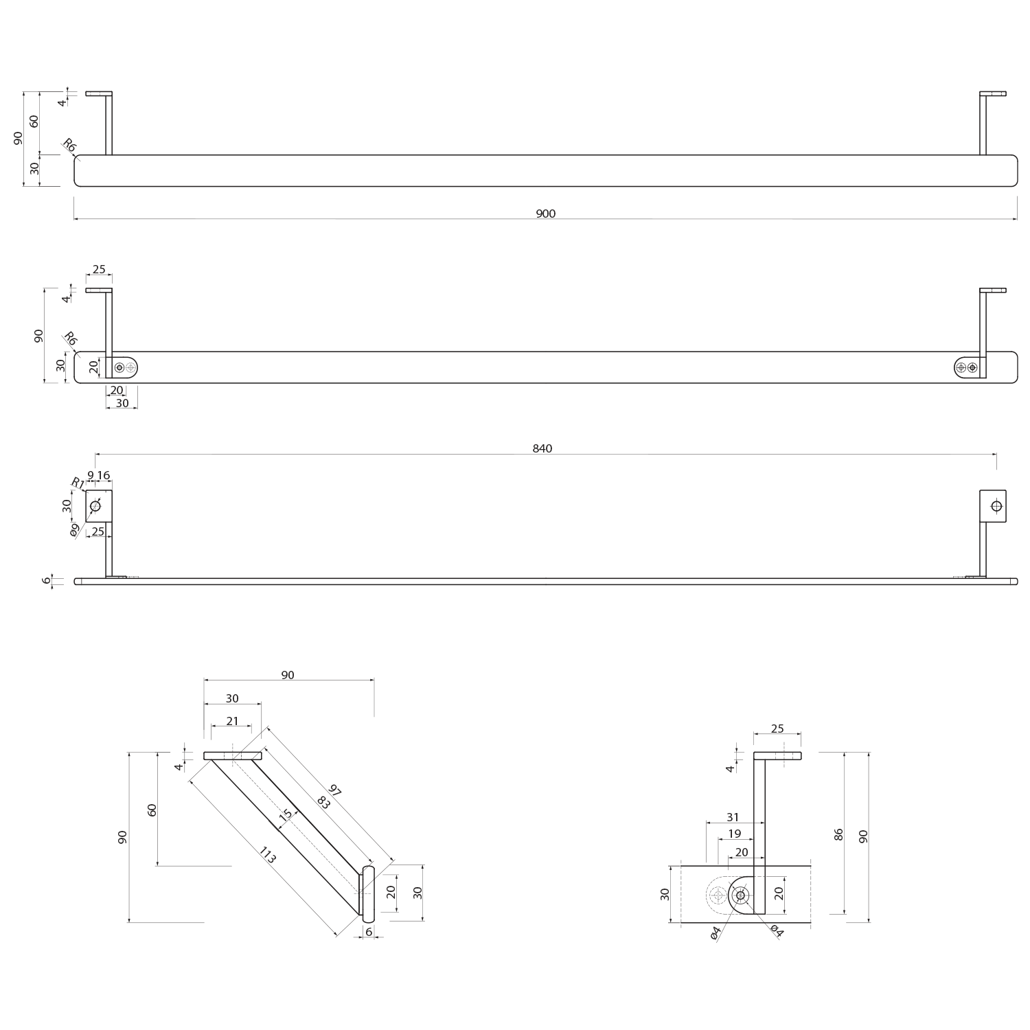 GSI PURA čelní držák ručníků 100cm, chrom PAPR100