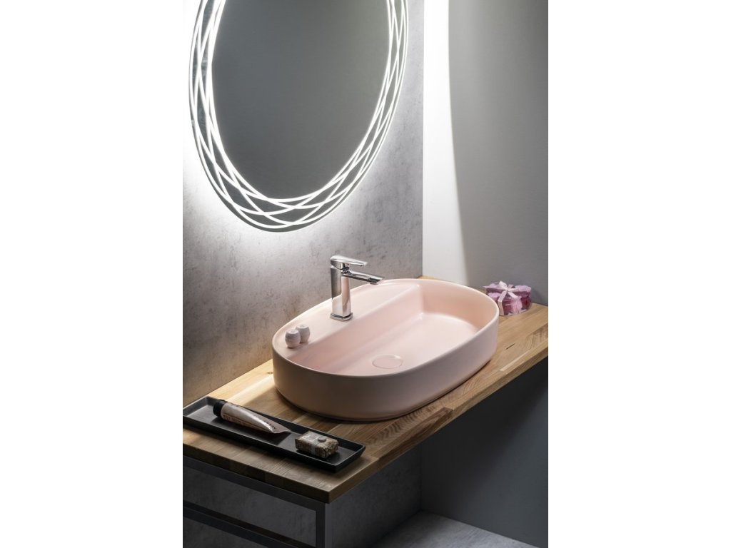 Isvea INFINITY OVAL keramické umyvadlo na desku, 60x40cm, růžová Salmon 10NF65060-2S