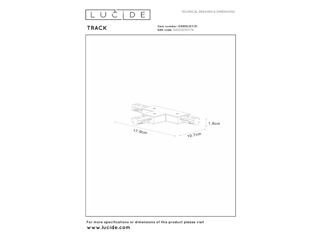 Lucide TRACK T-konektor - 1-okruhový Systém osvětlení kolejí - Bílý (prodloužení)