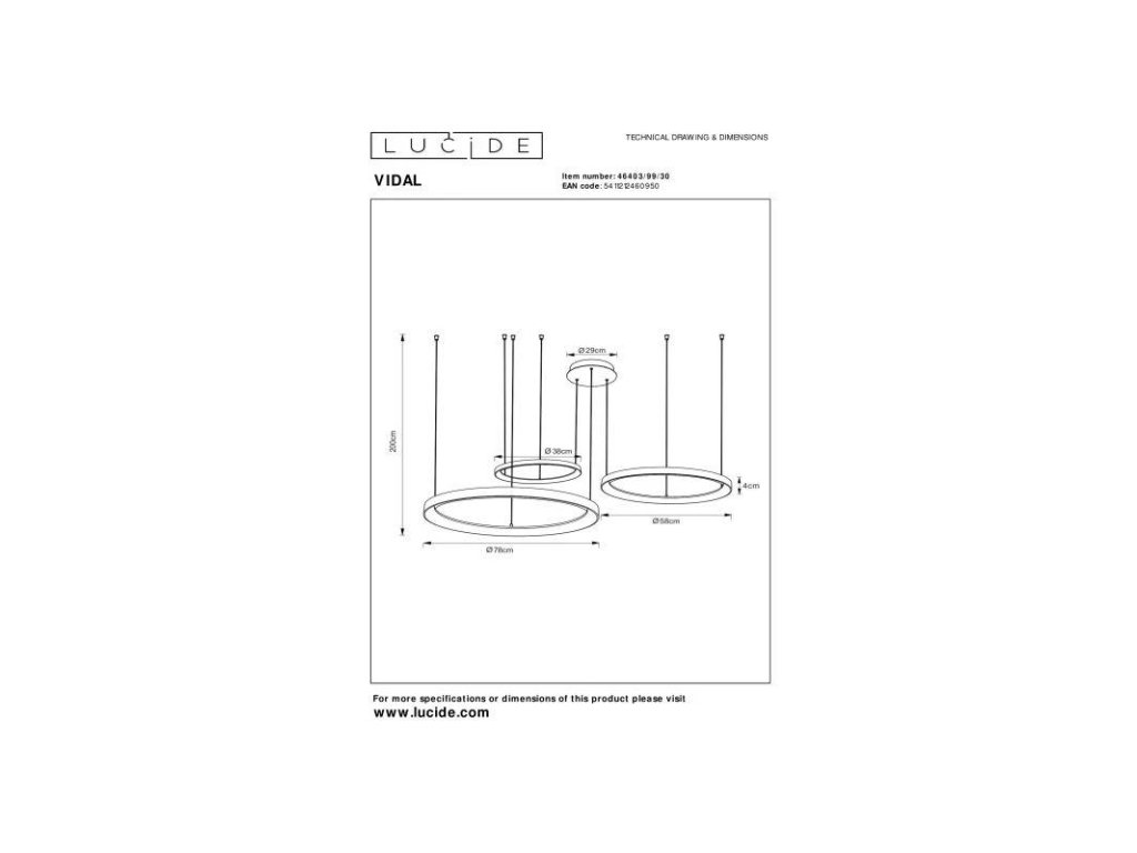 Lucide VIDAL - Závěsné svítidlo - Ø 78 cm - LED Rozm. - 1x120W 2700K - Černá