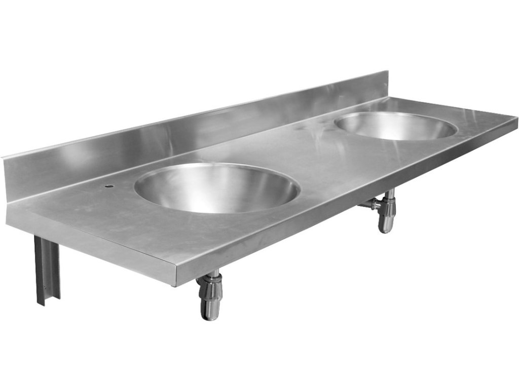 NOFER Závěsný pult se dvěma umyvadly 1200x254x550 mm, nerez mat 13071.2.S