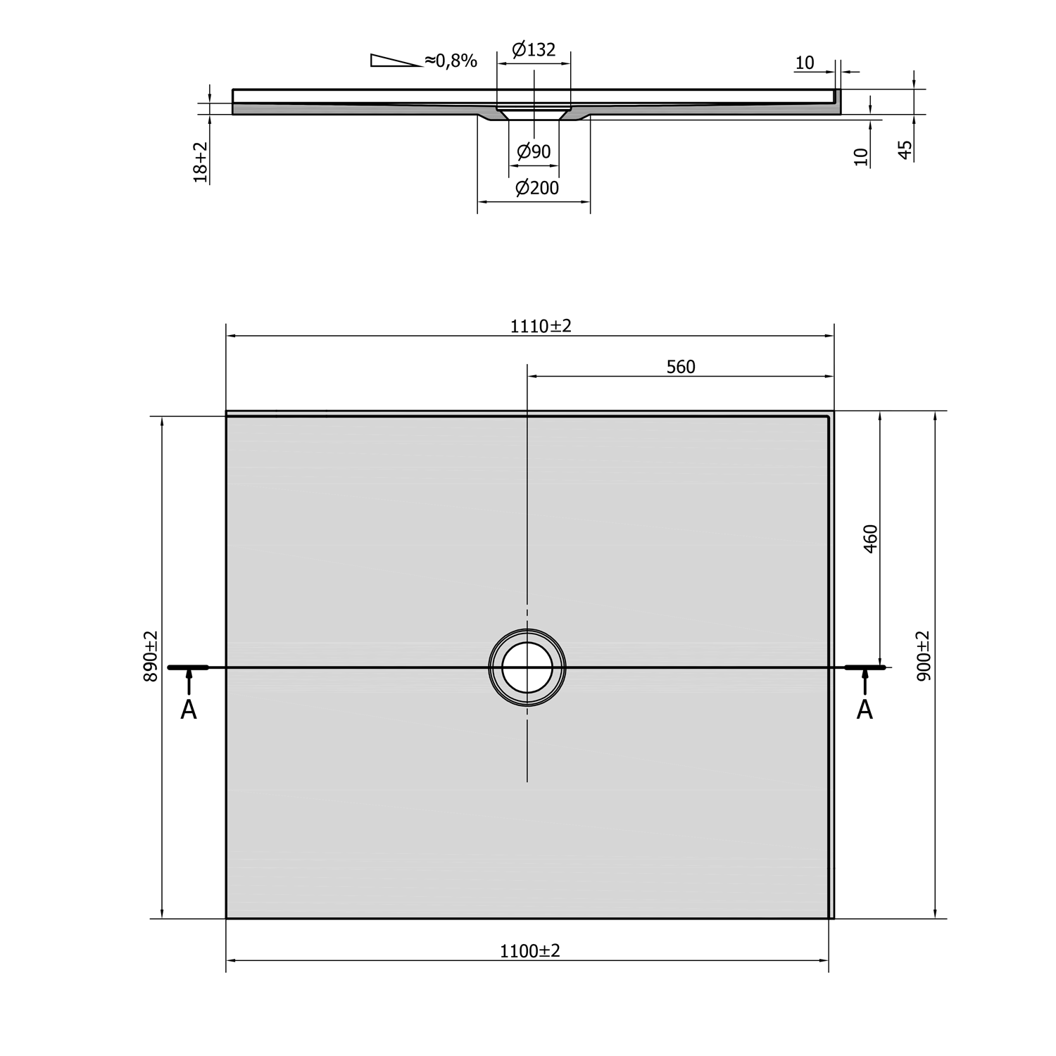 • Drážky na spodní straně umožňují vaničku nalepit přímo na podlahu. Díky nízké výšce 18 mm lze dlažbu nalepit do stejné roviny s vaničkou.