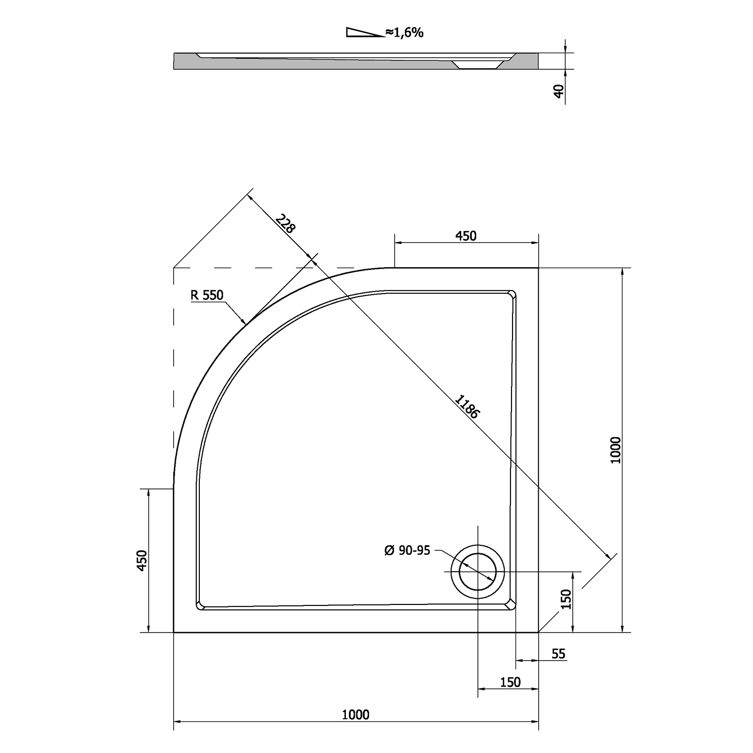 Polysan SERA sprchová vanička z litého mramoru, čtvrtkruh 100x100cm, R550, bílá 62111