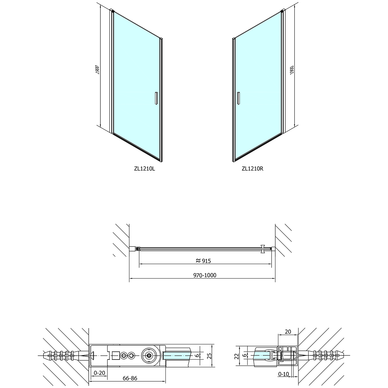 - Dvoukřídlé dveře 800, 900, 1000 a 1200 mm jsou vhodné pouze pro instalaci do niky, nelze je kombinovat s boční stěnou