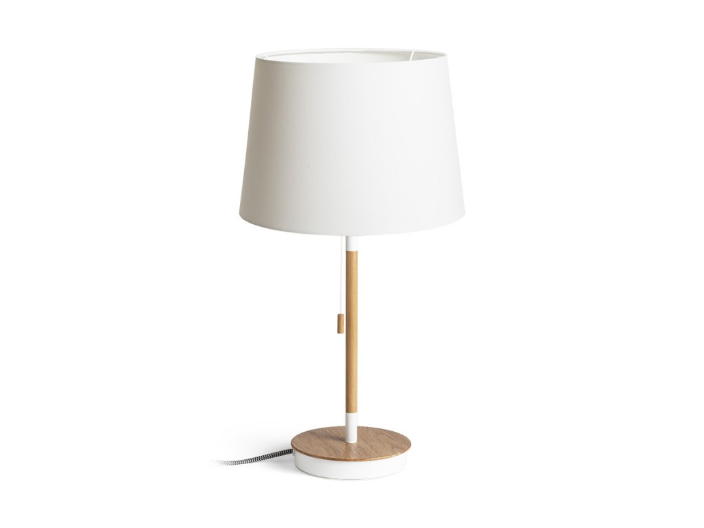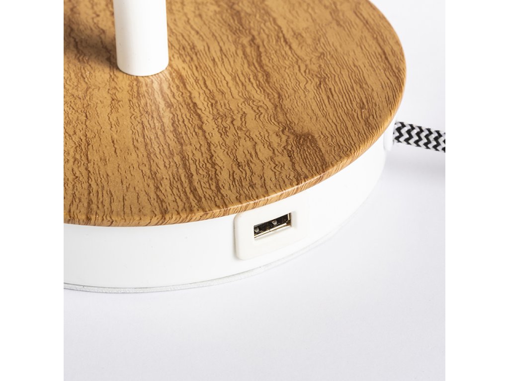 RENDL KEITH/AMBITUS 30 stolní s USB Polycotton bílá/buk 230V LED E27 15W R14039
