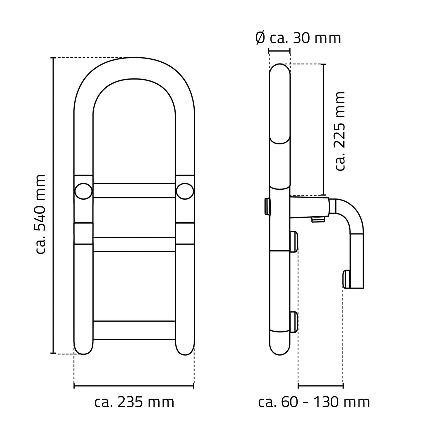 - Nastavitelná rozteč na vanu: 6-13 cm