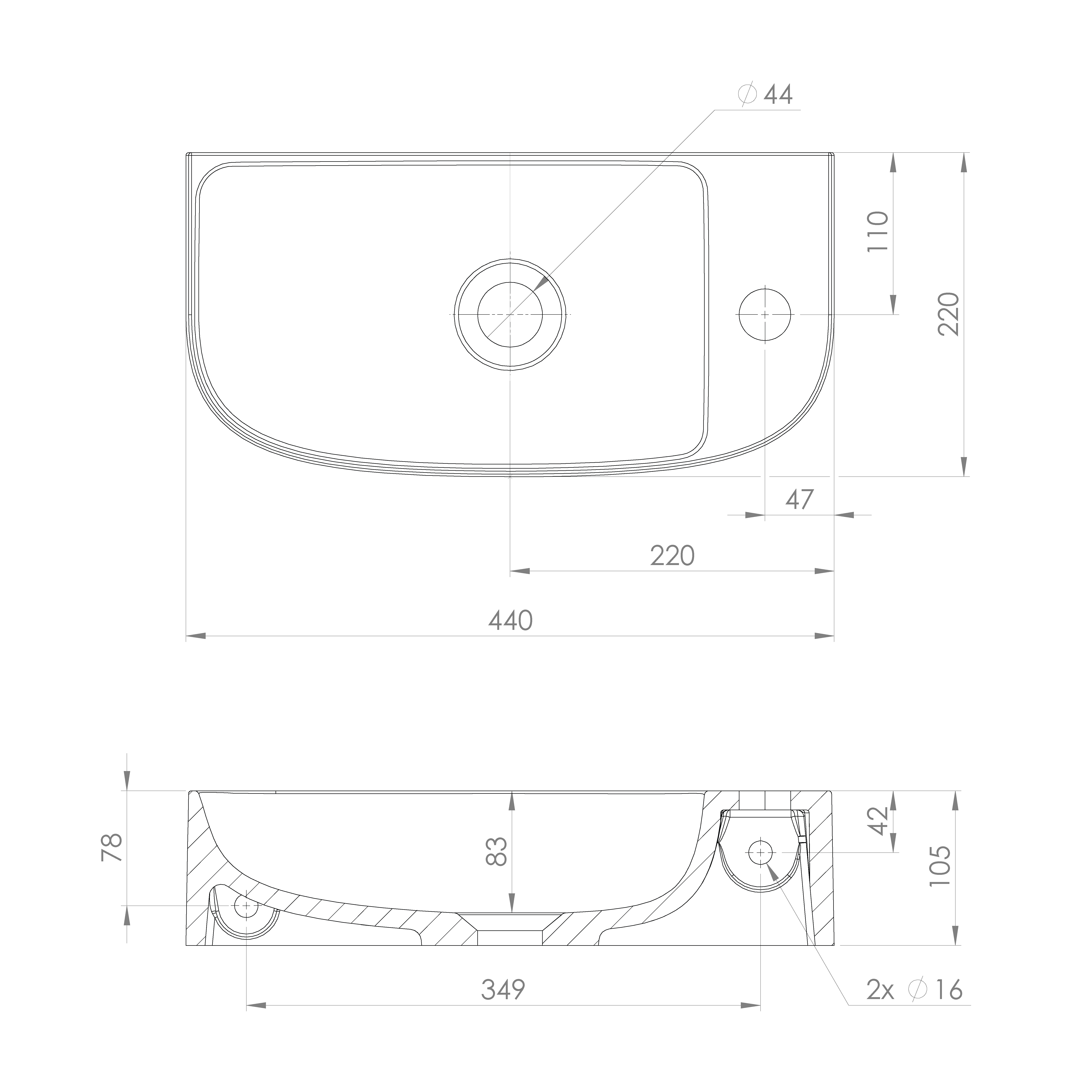 Sapho ALGA umývátko, litý mramor, 44x22cm, bílá AG440