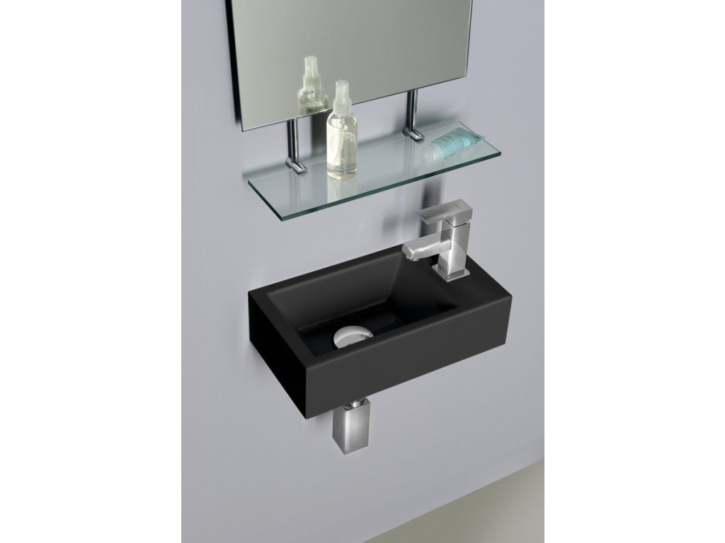 Sapho AMAROK umývátko, litý mramor, 40x22cm, baterie vpravo, černá mat AR500B