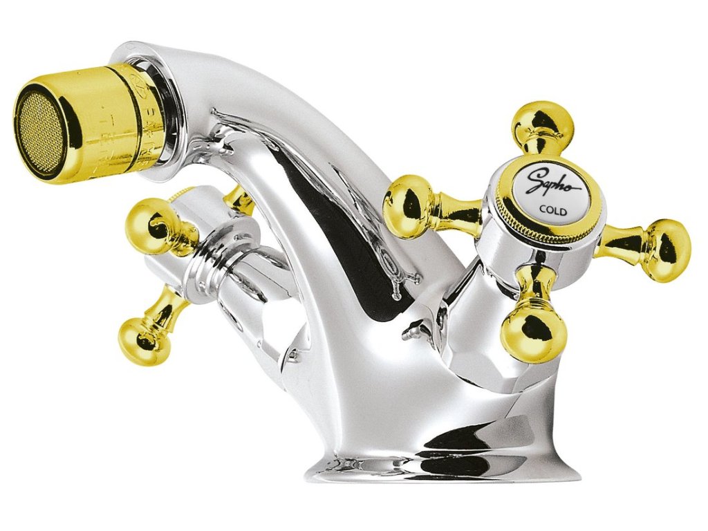 Sapho ANTEA stojánková bidetová baterie s výpustí, chrom/zlato 3182