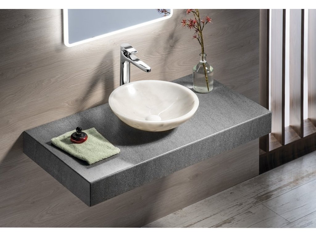 Sapho BLOK kamenné umyvadlo na desku Ø 40cm, leštěný bílý mramor 2401-34