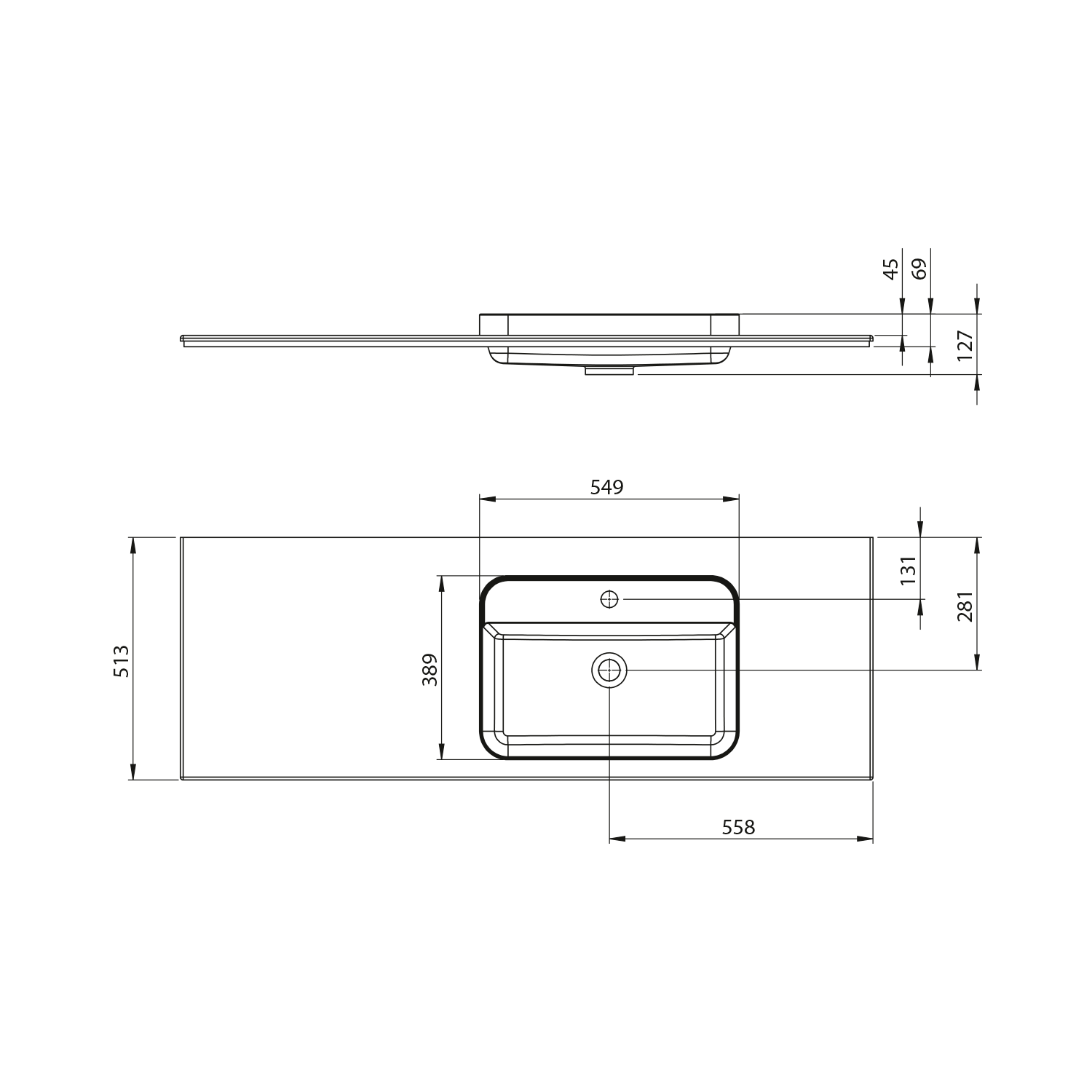 Sapho BRAHEA umyvadlo 146,6x51,5cm, rockstone, pravé, bílá mat BT147R