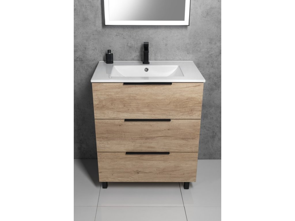 Sapho CIRASA umyvadlová skříňka 69,8x75x46cm, 3x zásuvka, dub stříbrný CR731-1111