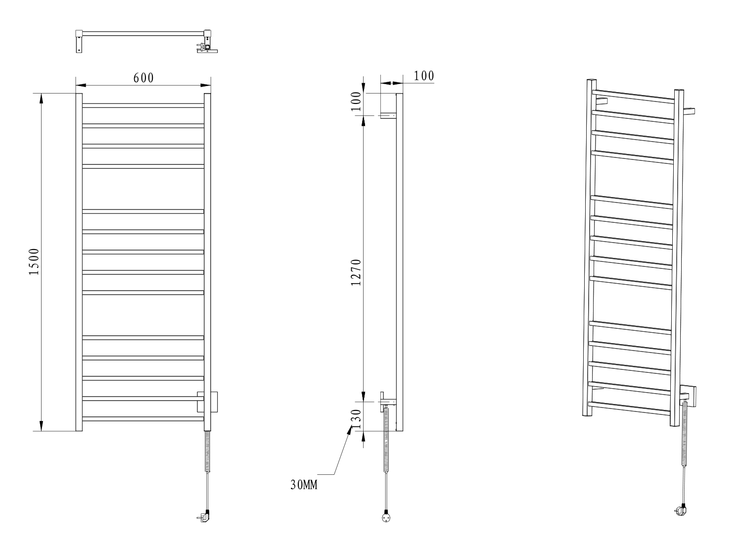 Sapho ESKINADO elektrický sušák ručníků, hranatý, 600x1500 mm, 130 W, nerez lesk ER450V