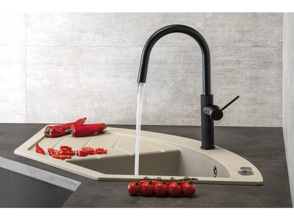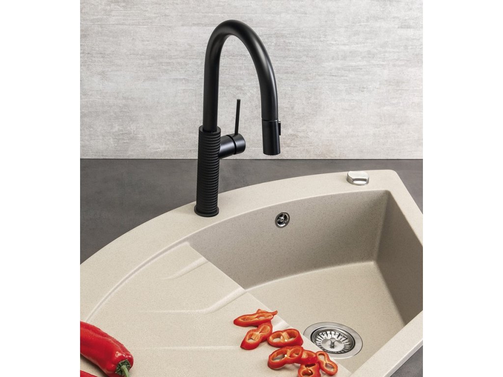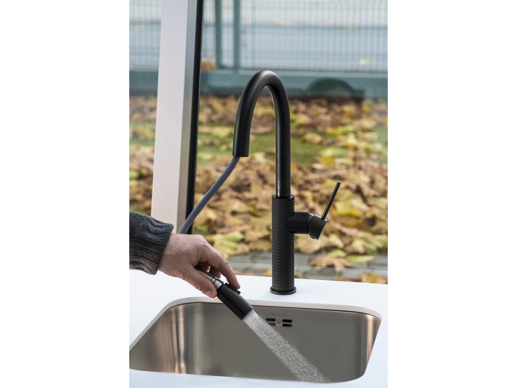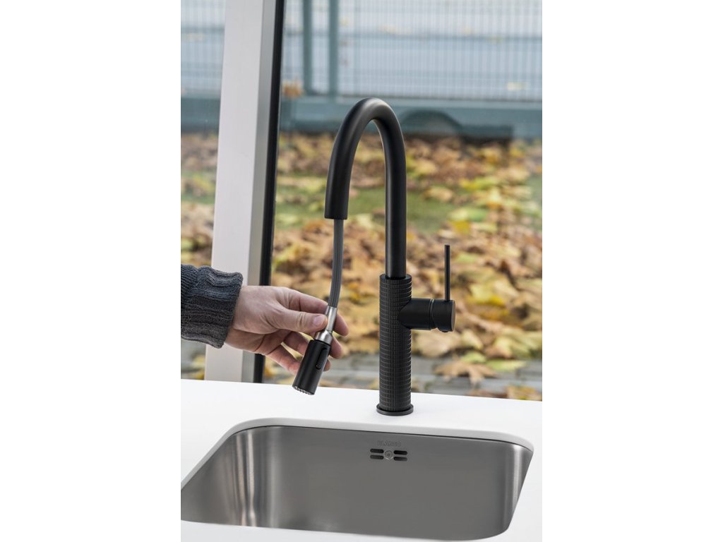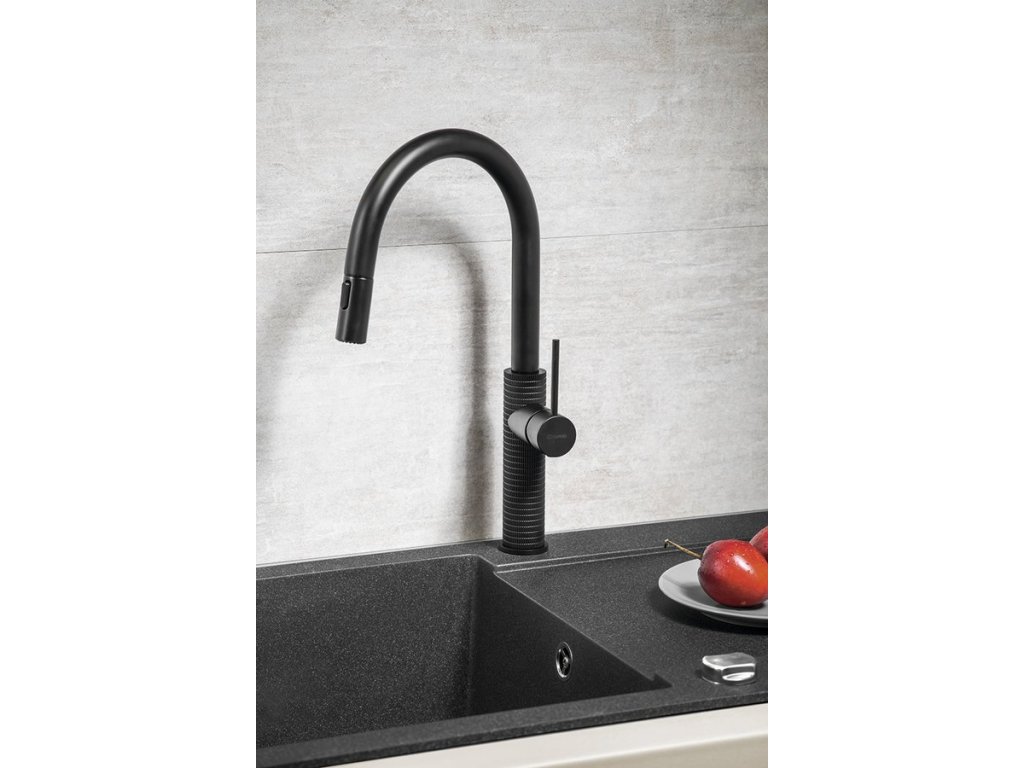 Sapho FLAWO stojánková dřezová baterie s výsuvnou sprškou, černá mat FR576B