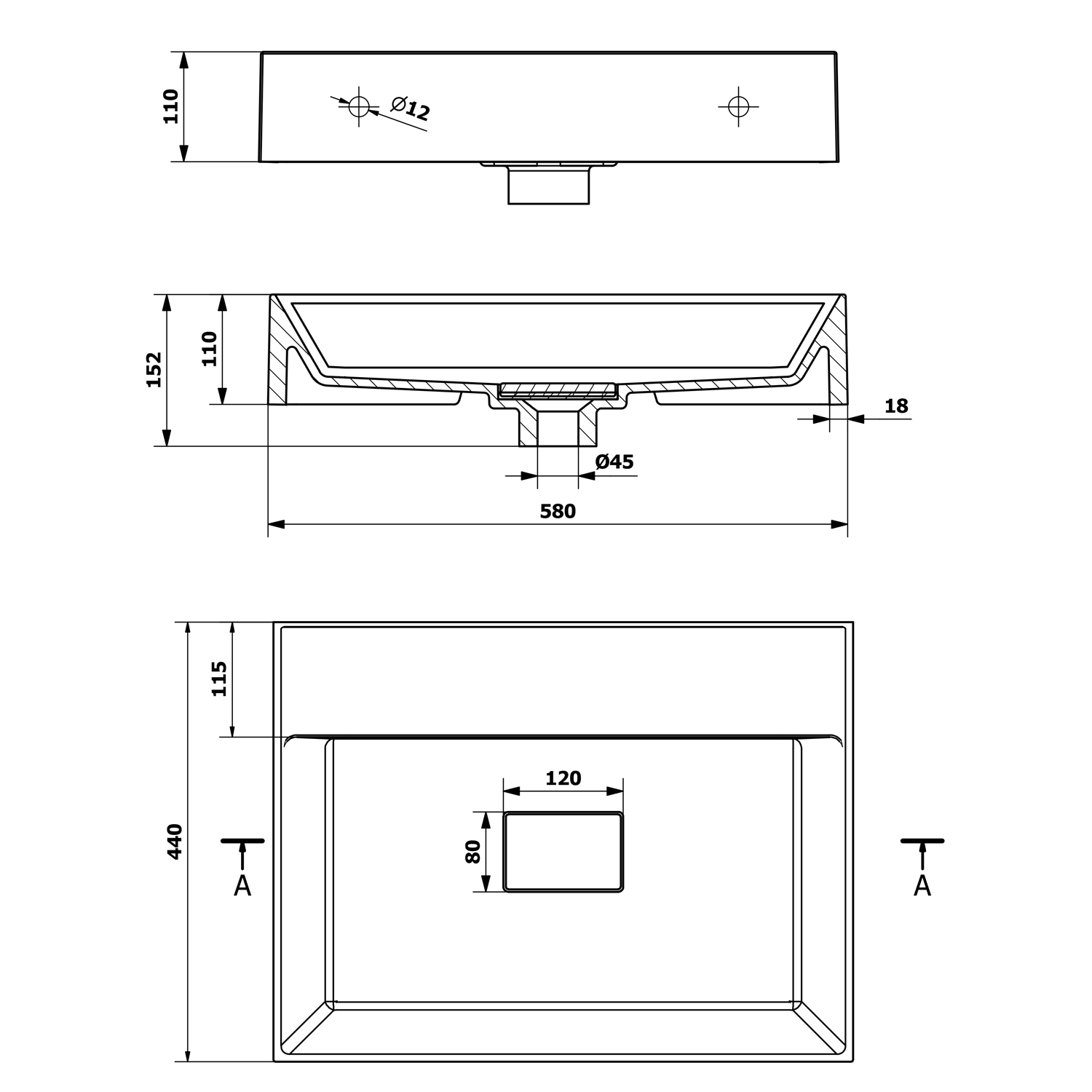 Sapho GODIVA umyvadlo, litý mramor, 58x44cm, bez otvoru pro baterii, bílá GU058-0