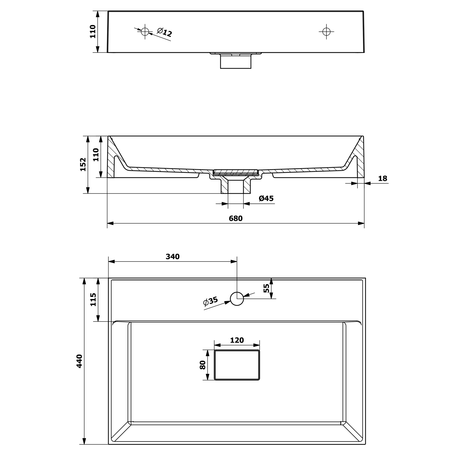 Sapho GODIVA umyvadlo, litý mramor, 68x44cm, bílá GU068