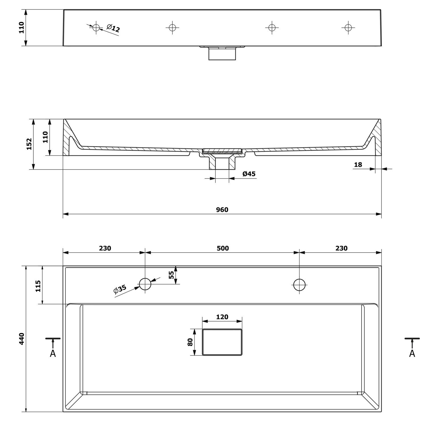 Sapho GODIVA umyvadlo, litý mramor, 96x44cm, 2 otvory pro baterii, bílá GU096-2