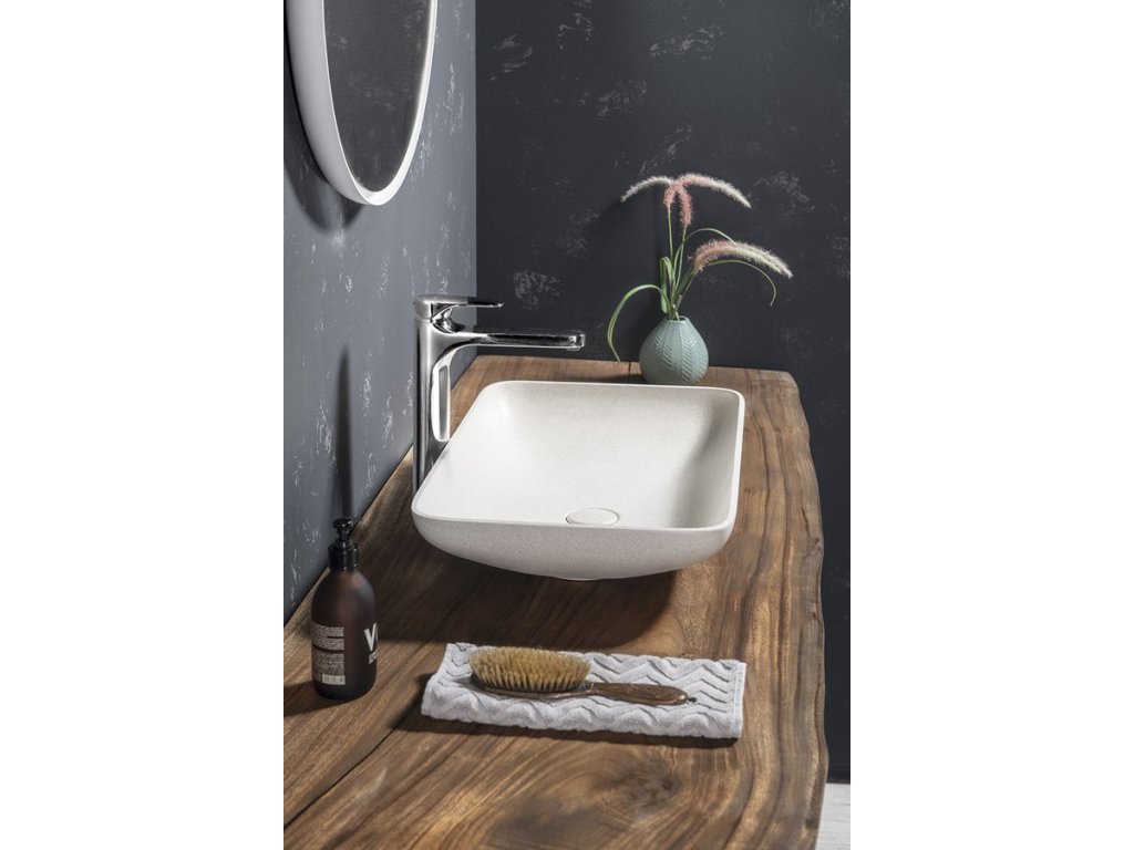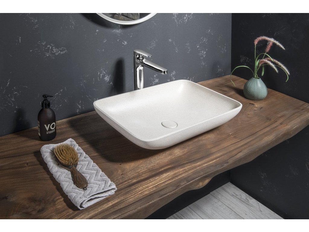 Sapho INFRANE betonové umyvadlo na desku, včetně výpusti, 57x37cm, bílý pískovec AR460