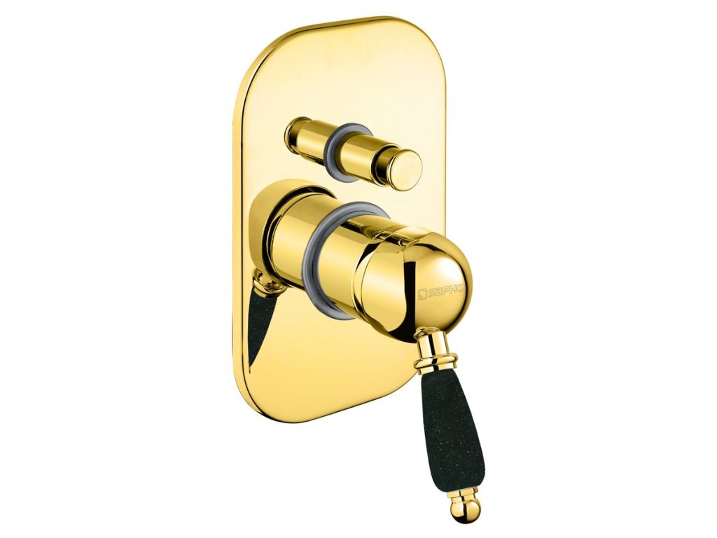 Sapho KIRKÉ BLACK podomítková sprchová baterie, 2 výstupy, černá páčka, zlato KI42NZ