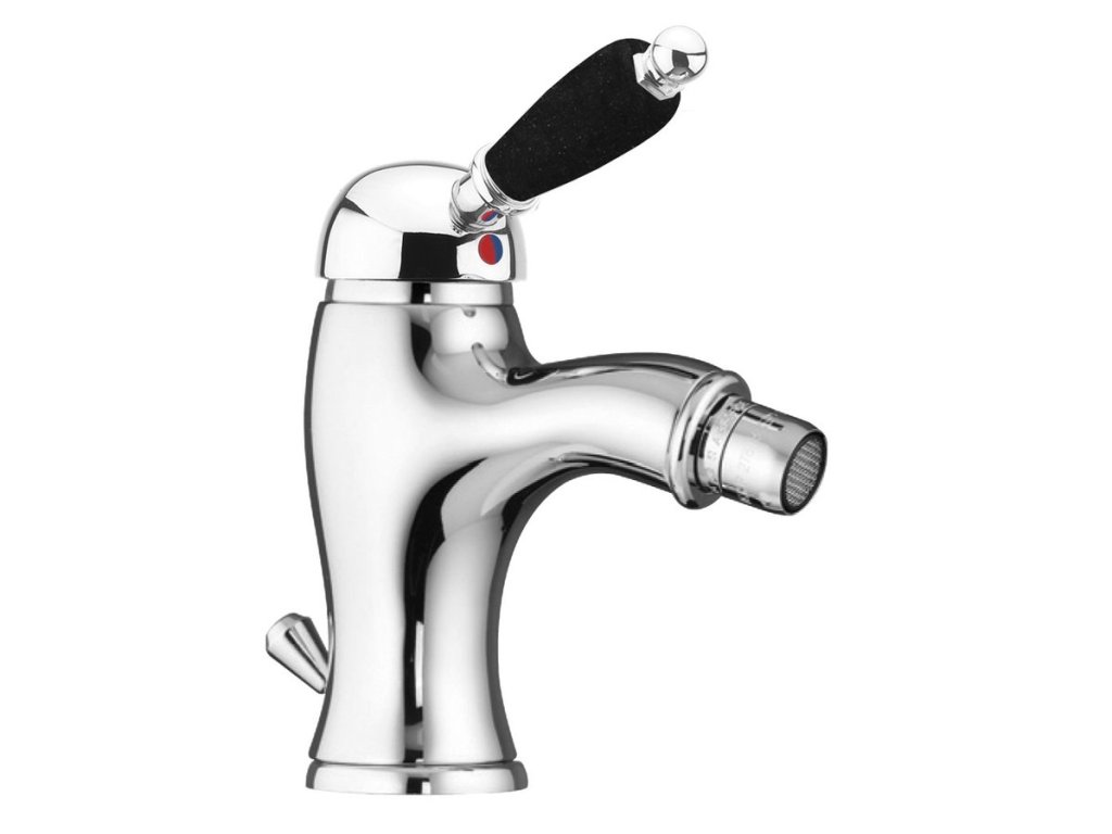 Sapho KIRKÉ BLACK stojánková bidetová baterie s výpustí, černá páčka, chrom KI03NC