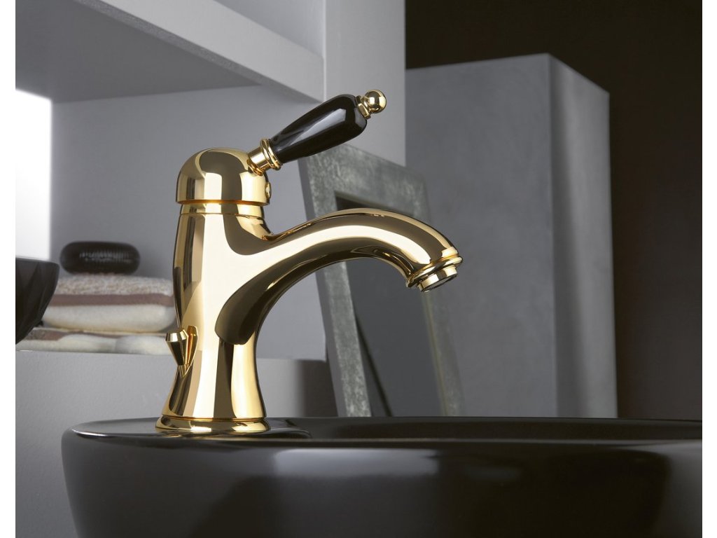 Sapho KIRKÉ BLACK stojánková umyvadlová baterie s výpustí, černá páčka, zlato KI02NZ