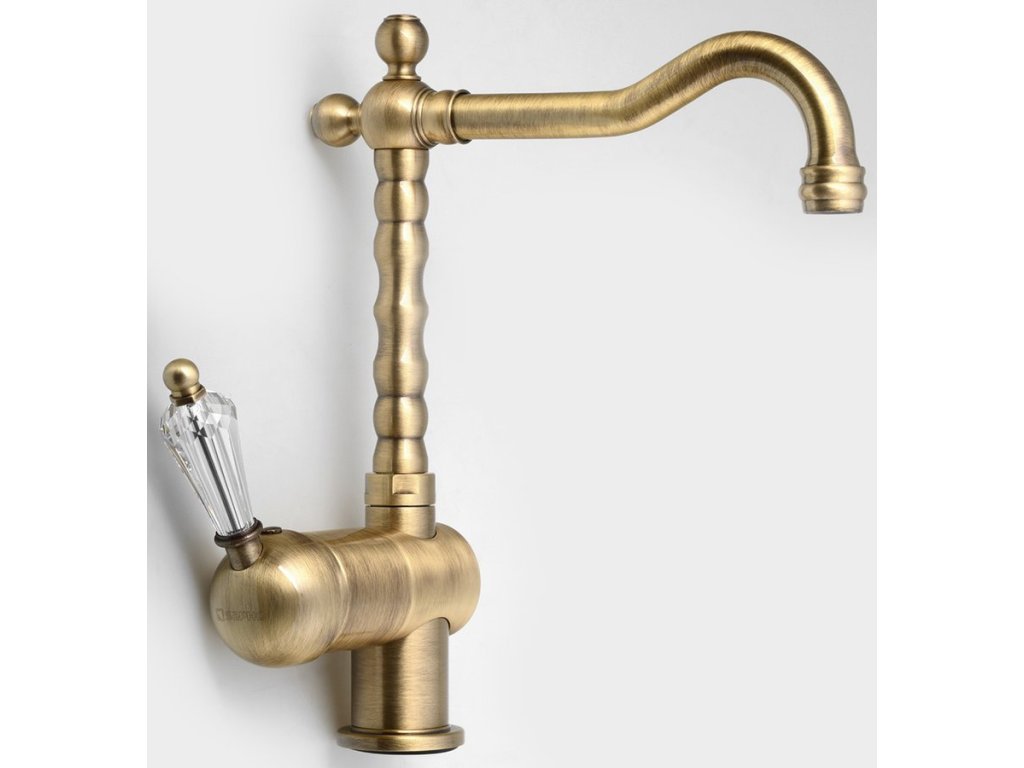 Sapho KIRKÉ CRYSTAL stojánková dřezová baterie, páčka krystal, bronz KI14KB