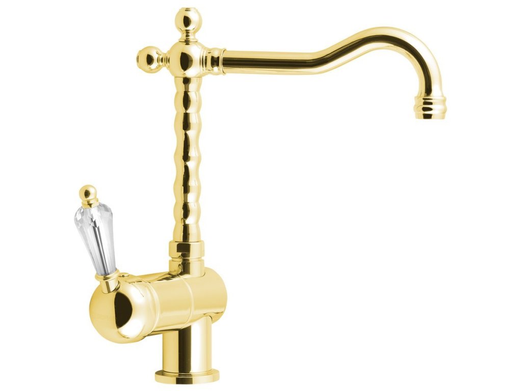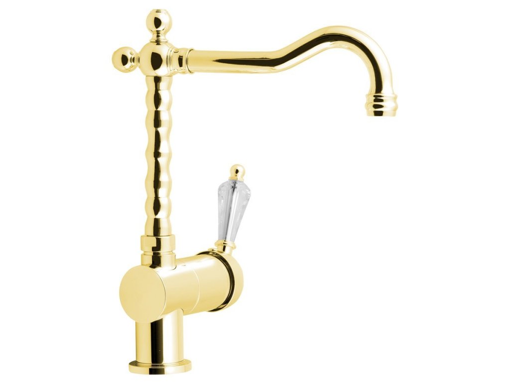 Sapho KIRKÉ CRYSTAL stojánková dřezová baterie, páčka krystal, zlato KI14KZ