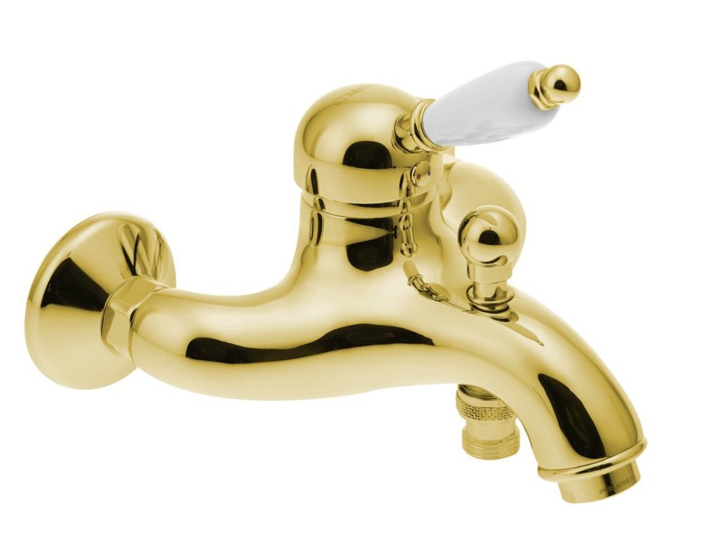 Sapho KIRKÉ WHITE nástěnná vanová baterie, bílá páčka, zlato KI10BZ