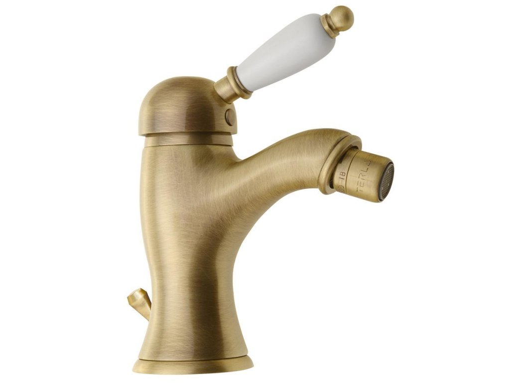 Sapho KIRKÉ WHITE stojánková bidetová baterie s výpustí, bílá páčka, bronz KI03BB