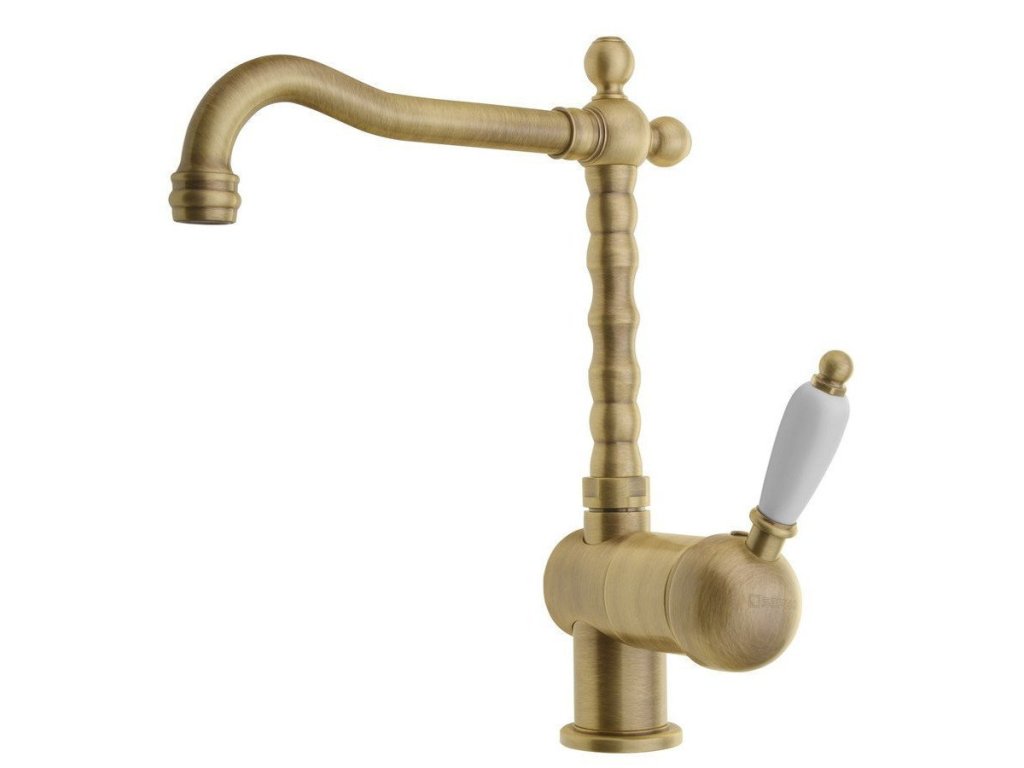 Sapho KIRKÉ WHITE stojánková dřezová baterie, bílá páčka, bronz KI14BB