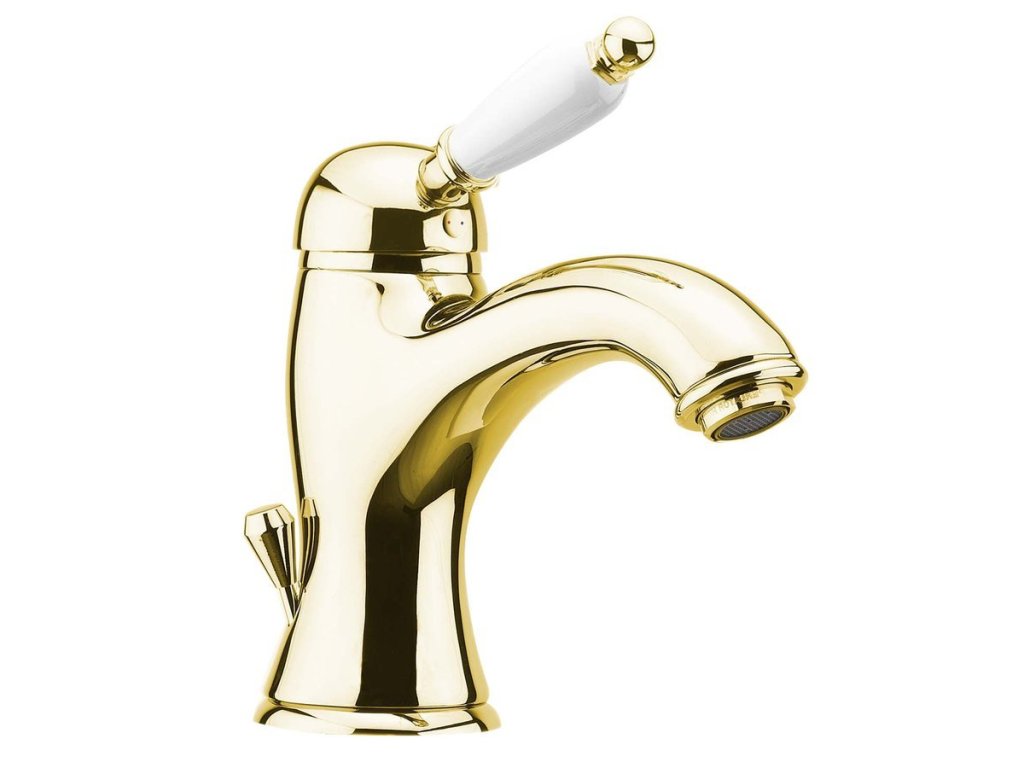 Sapho KIRKÉ WHITE stojánková umyvadlová baterie s výpustí, bílá páčka, zlato KI02BZ