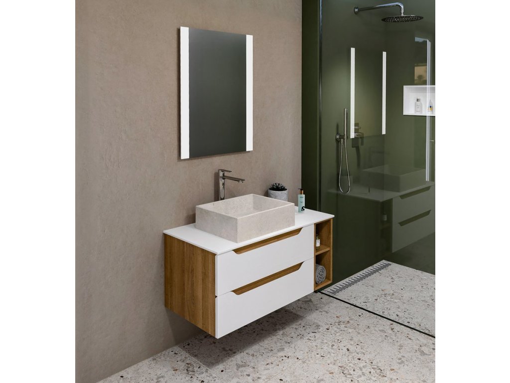 Sapho Koupelnový set WAVE 80+20, bílá/dub cuneo KSET-090