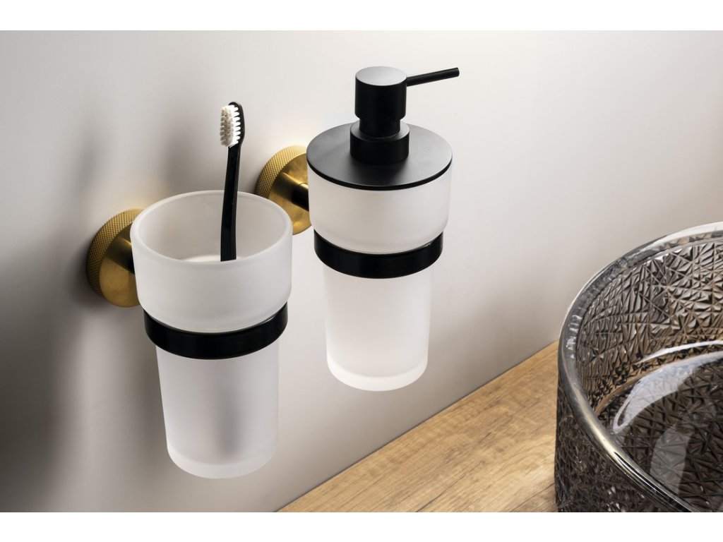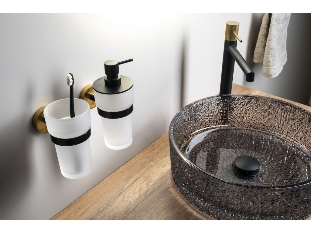 Sapho LARISSA dávkovač mýdla 250ml, mléčné sklo, černá/zlato mat WS019BG
