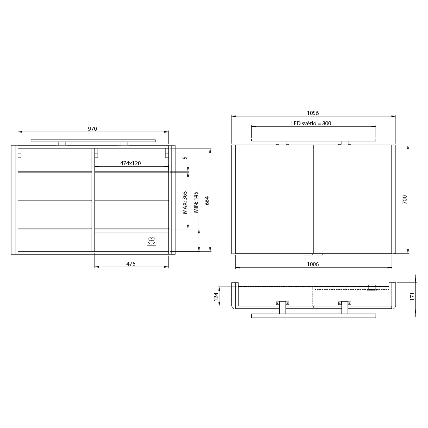 Sapho LUCIE galerka s LED osvětlením, 106x70x17cm, bílá LU105-0030