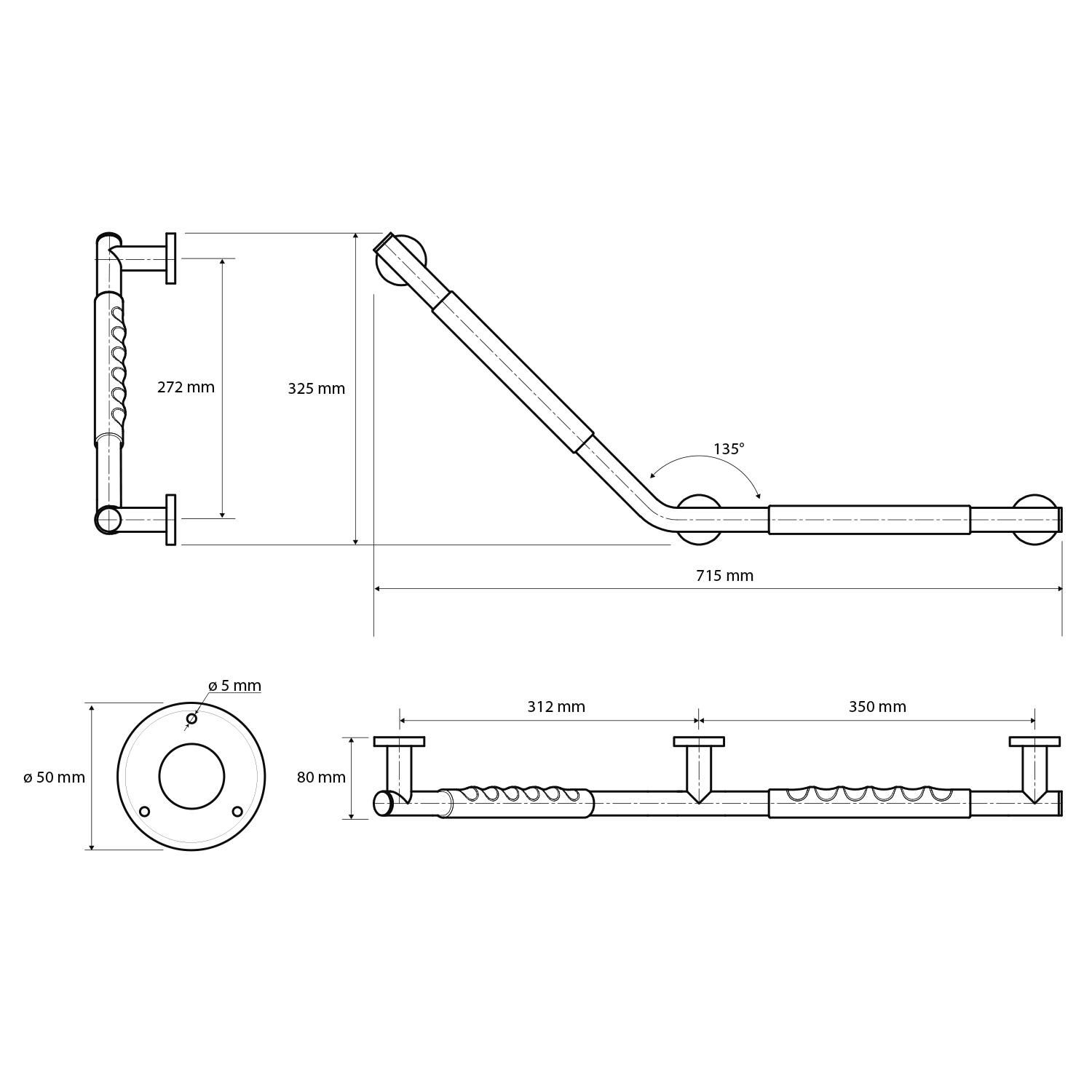 Sapho Madlo lomené 135° s protiskluzem LEVÉ, nerez lesk XR507
