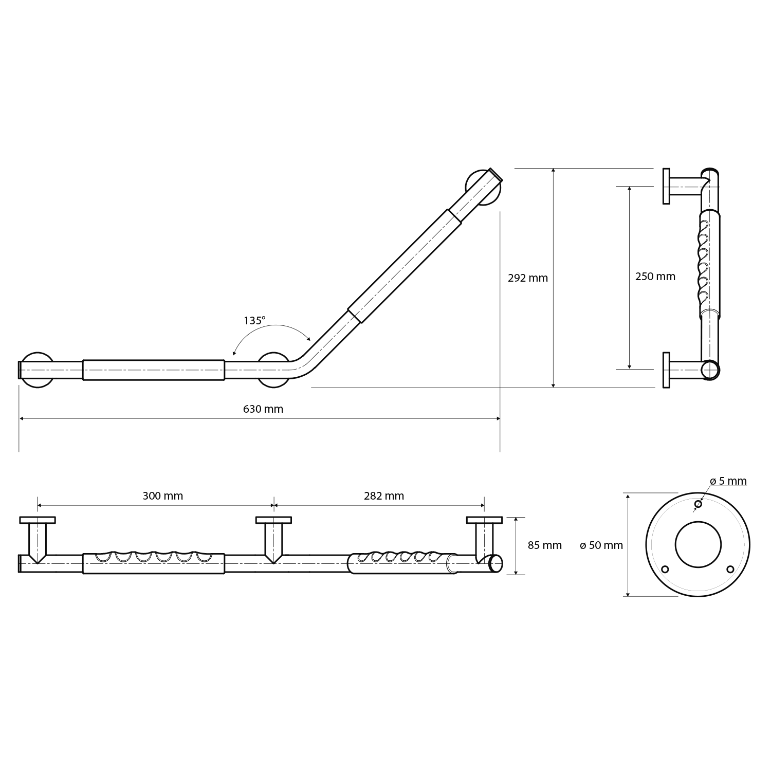 Sapho Madlo lomené 135° s protiskluzem PRAVÉ, nerez lesk XR508