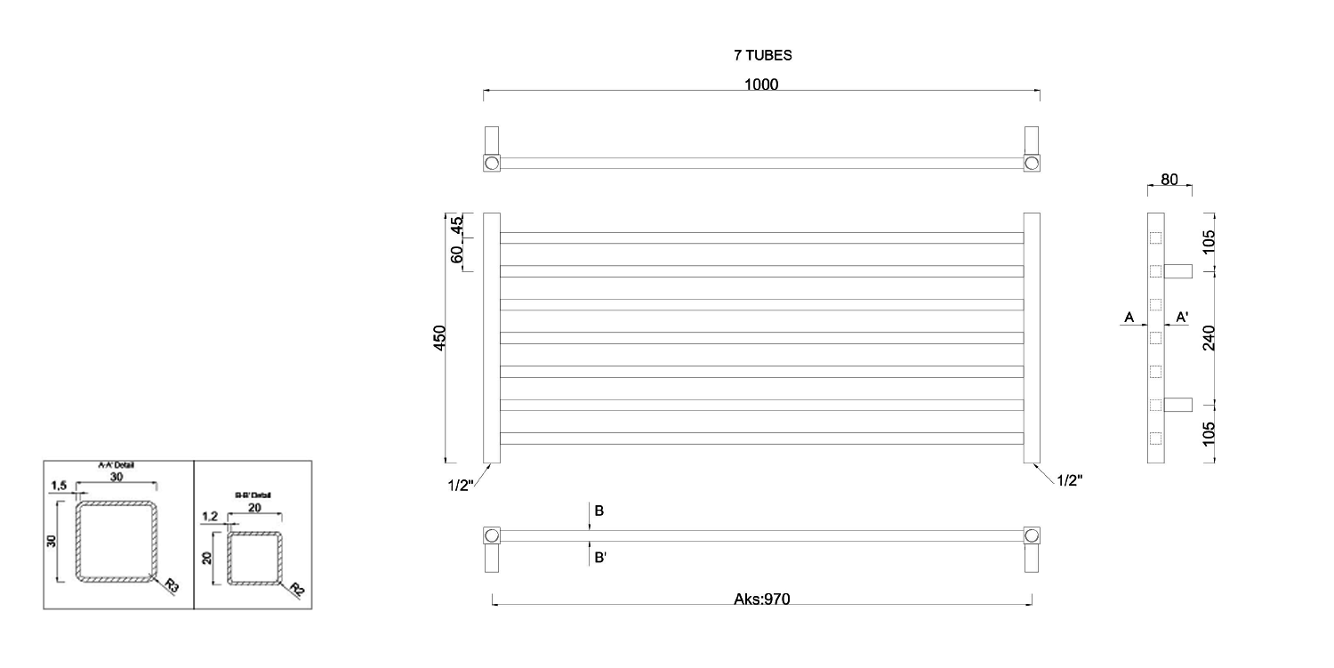Sapho METRO otopné těleso 1000x450 mm, chrom 0411-10