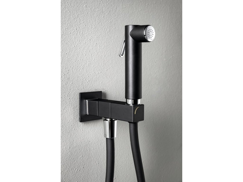 Sapho Nástěnný ventil s ruční bidetovou sprškou a bezpečnostní pojistkou,hranatý,černá mat SG108NE