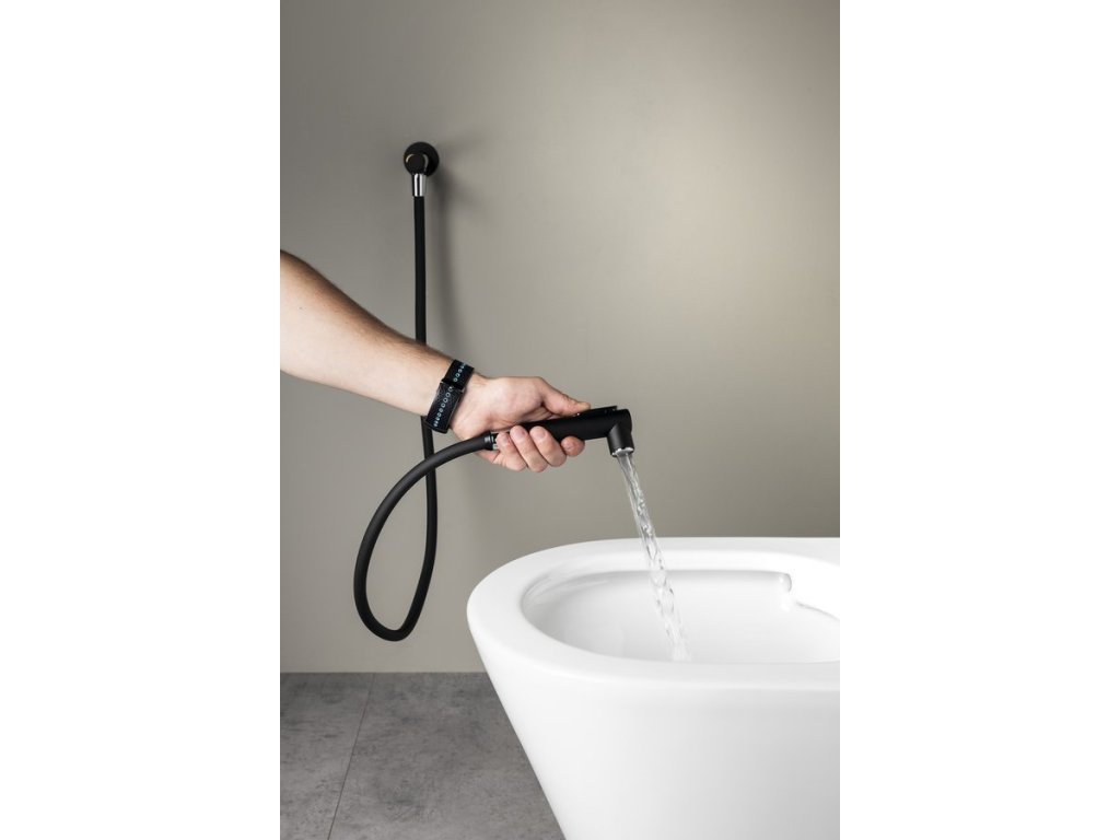 Sapho Nástěnný ventil s ruční bidetovou sprškou a bezpečnostní pojistkou,kulatý,černá mat SG107NE