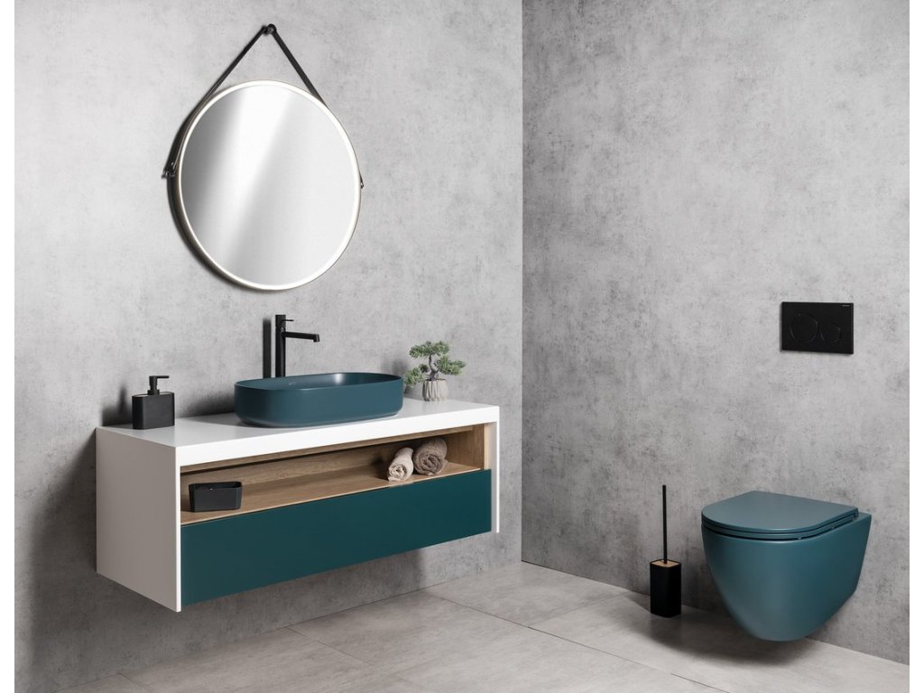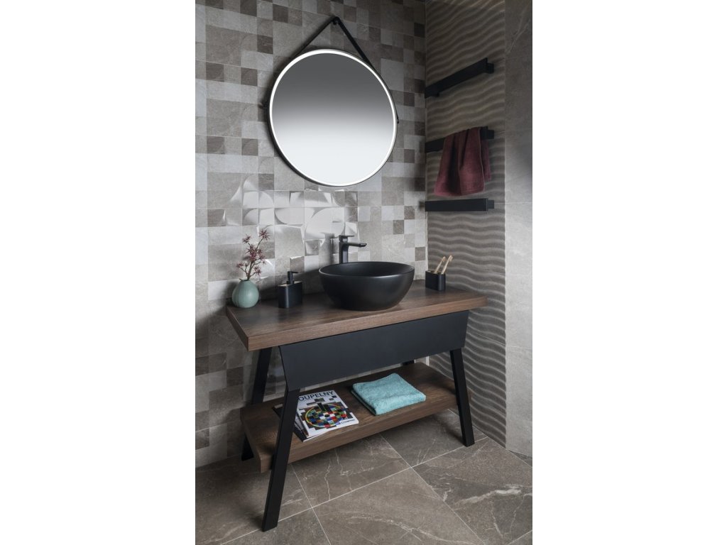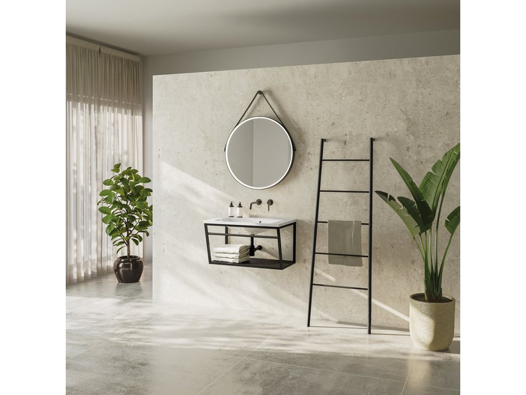 Sapho ORBITER kulaté zrcadlo s LED osvětlením ø 70cm, kožený pásek, černá mat ORL070