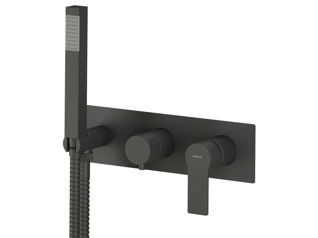 Sapho PAX podomítková sprchová/vanová baterie s ruční sprchou, 3 výstupy, černá mat XA53/15