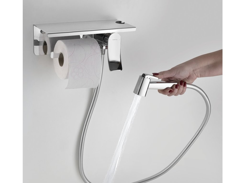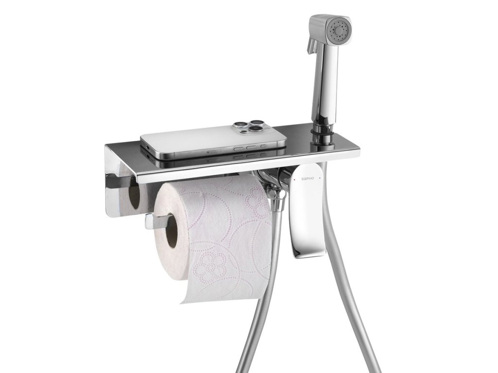 Sapho Podomítková bidetová baterie se Stop sprškou a držákem toaletního papíru, chrom TJ040